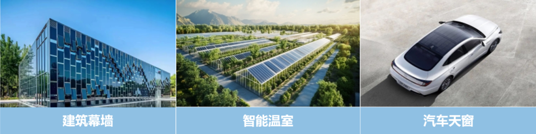 这款模组可以集成于建筑幕墙、智能温室玻璃、汽车天窗等应用场景,既满足采光需求,又能实时将光能转化为电能,实现“建筑即电站”、“温室即电站”的创新应用。此次突破不仅填补了宽带隙半透明钙钛矿领域 “高效率、高透光、高稳定” 三者兼顾的技术空白,更打破了半透明光伏从实验室走向实际应用的关键壁垒,将为降低建筑能耗、提升农业种植能源自给能力、推动新能源汽车“光储用” 一体化提供有力支撑!